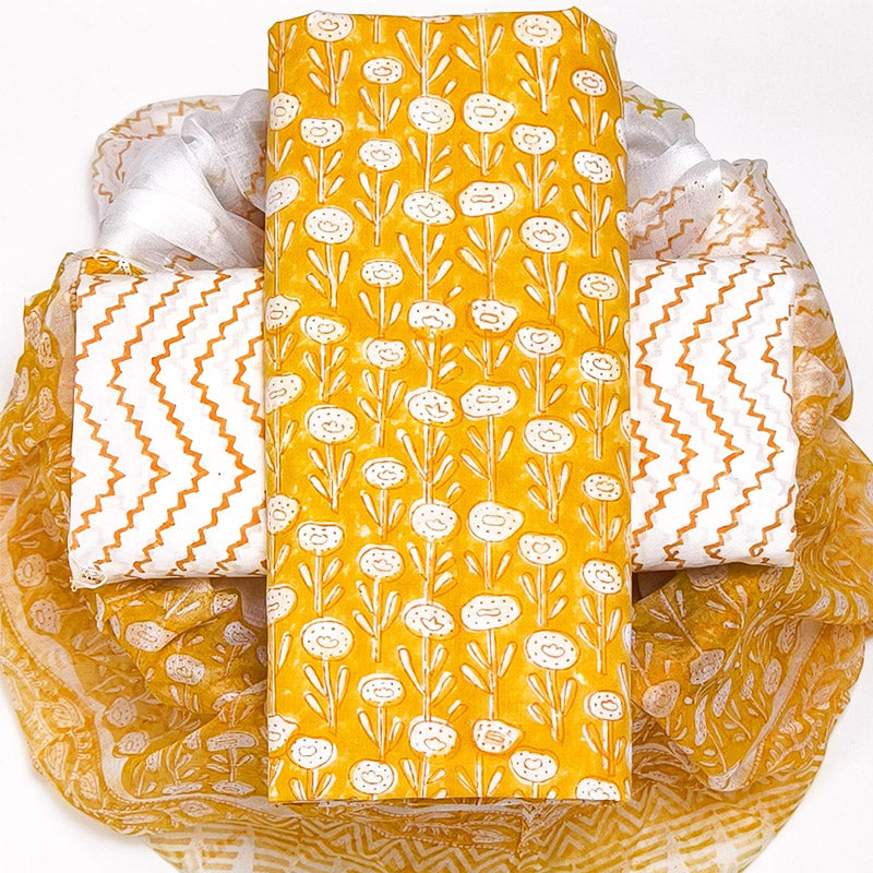 - Traditional Printing Technique: The process involves artisans using hand-carved wooden blocks dipped in natural or chemical dyes to imprint patterns on the fabric.