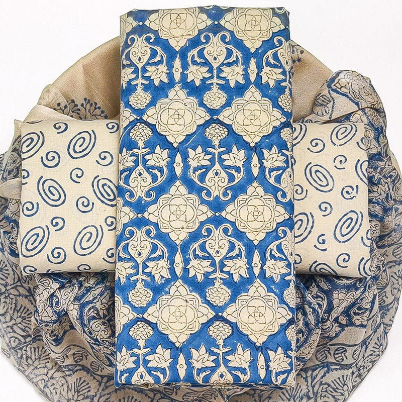 - Traditional Printing Technique: The process involves artisans using hand-carved wooden blocks dipped in natural or chemical dyes to imprint patterns on the fabric.