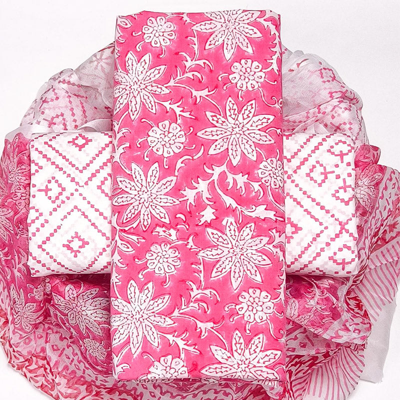 - Traditional Printing Technique: The process involves artisans using hand-carved wooden blocks dipped in natural or chemical dyes to imprint patterns on the fabric.